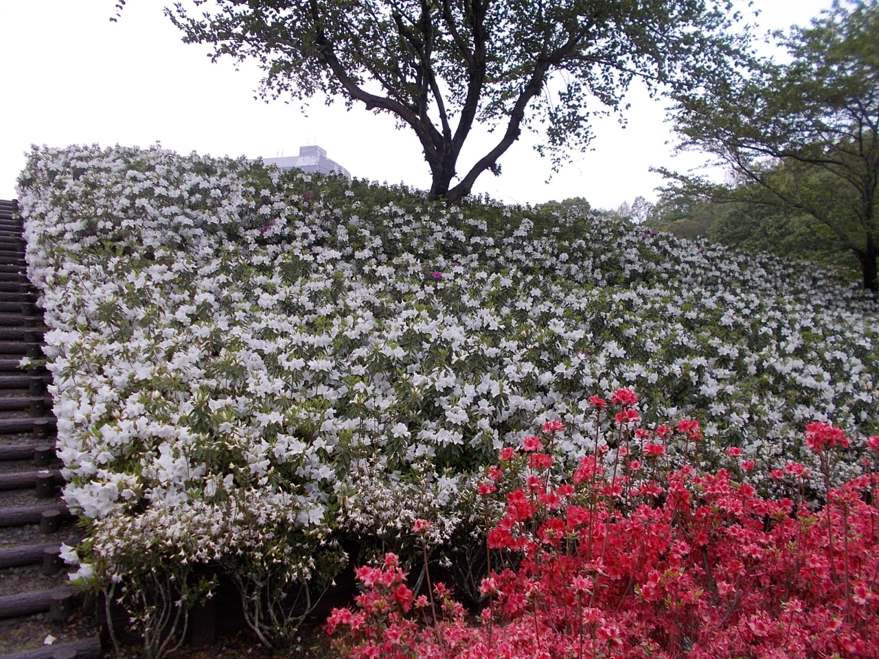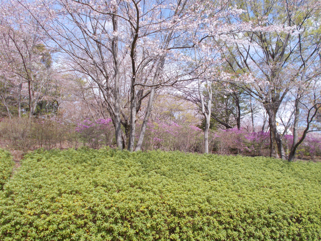 4月10日頃、ミツバツツジ・キリシマツツジ(赤)が咲き、下旬に向けてヒラドツツジ(赤・白)・アケボノツツジ・キリシマツツジ(ピンク)が咲き始めました。
