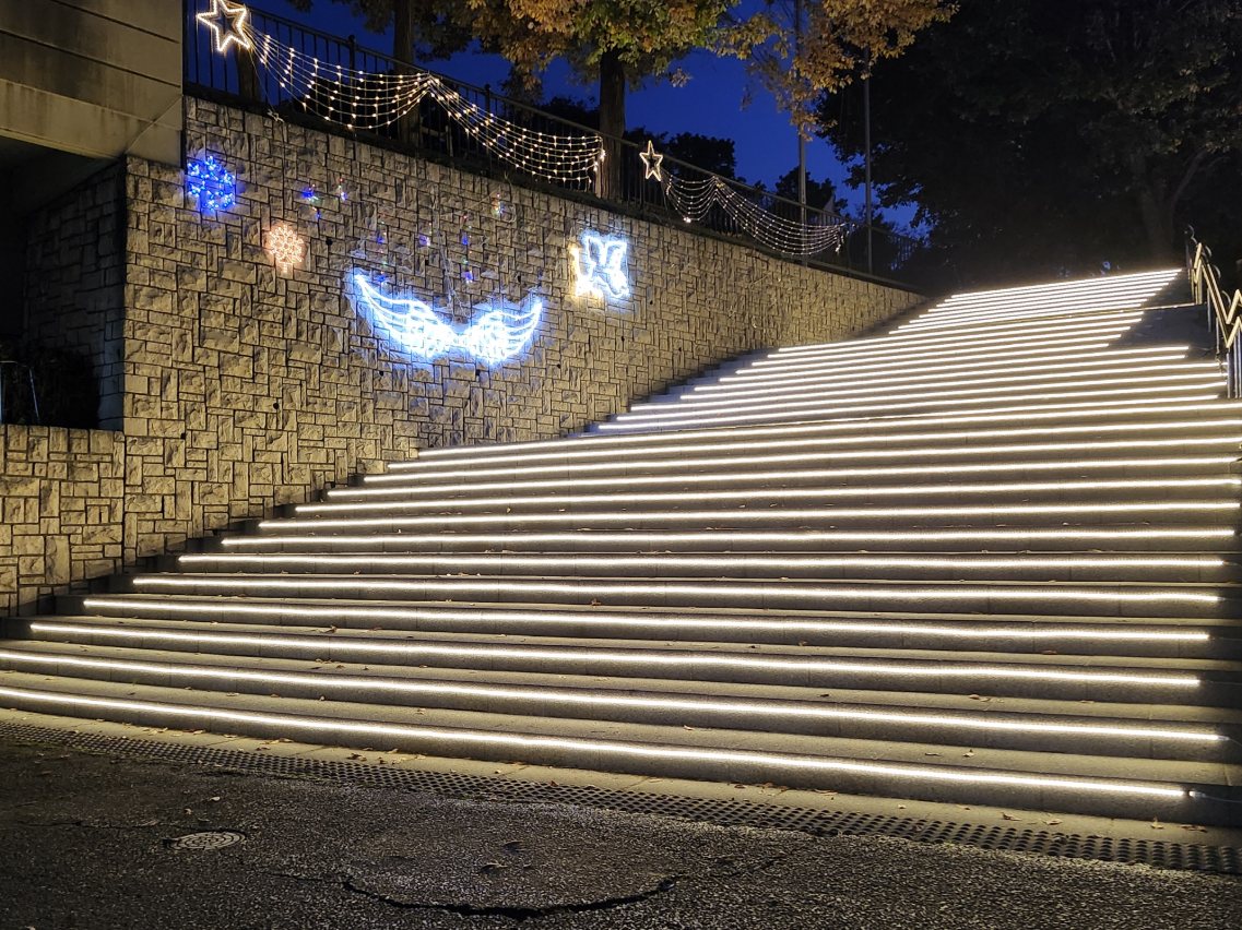 今年は階段にもイルミネーションを設置しましたので、足元がかなり明るいです